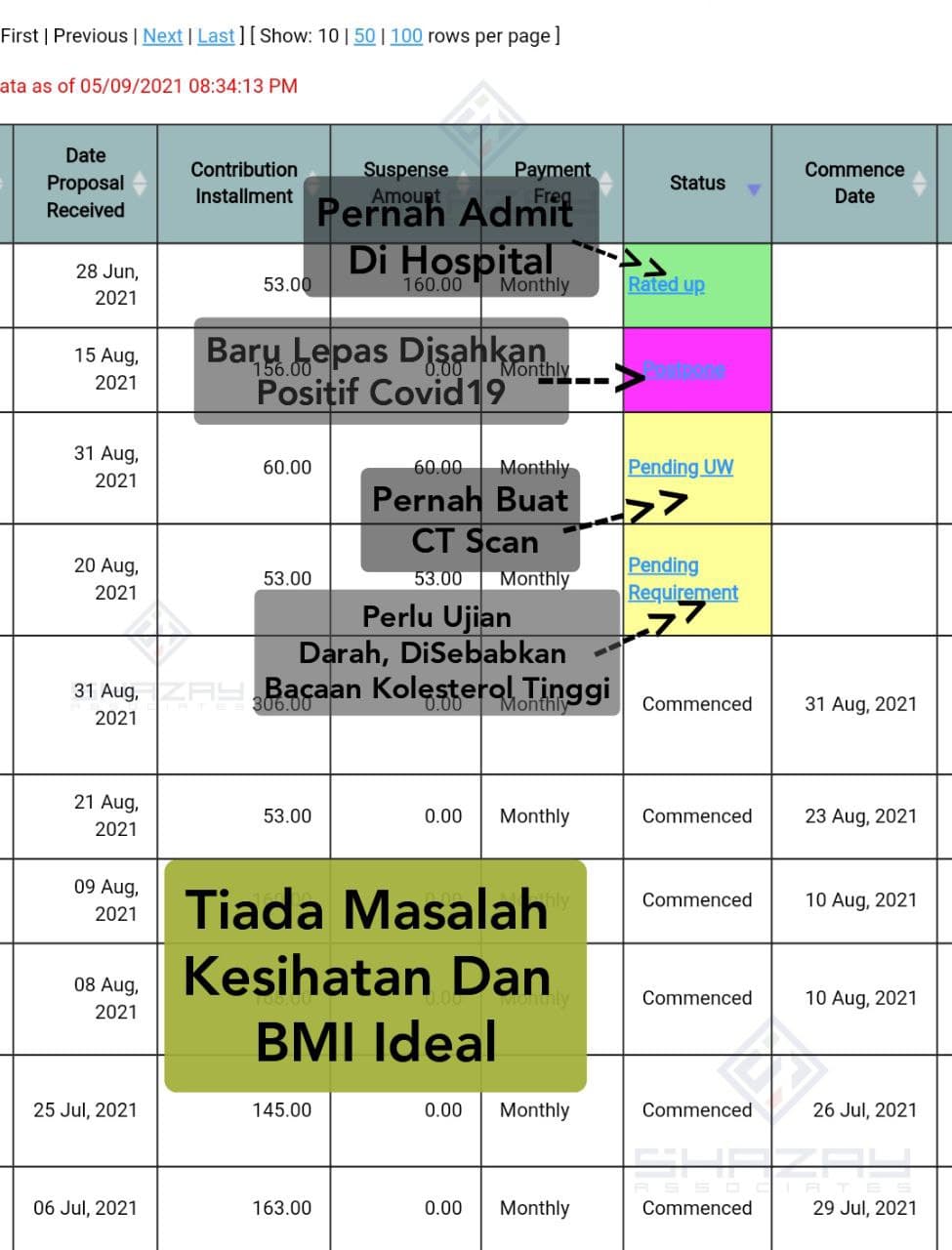 Bukan apa, sebab diluar sana, sangat ramai yang nak mohon takaful dan medical card namun tak boleh terus lulus permohonannya sebab ada yang permohonannya perlu ditangguh, ditolak dan dinaikkan jumlah sumbangan di atas sebab kesihatan, sejarah kesihatan dan sejarah kemasukan ke hospital.
