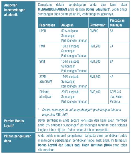 PruBSN SmartLink adalah satu pelan Sumbangan berkala berkaitan pelaburan yang direka unuk menyediakan perlindungan serta membina dana pendidikan yang kukuh untuk anak anda. Pelan ini juga menganugerahkan kecemerlangan akademik anak anda melalui manfaat uniknya, Bonus EduSmart.