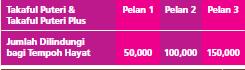Takaful Puteri adalah suatu rider yang dicipta khas yang memberi anda perlindungan terhadap kesan kewangan akibat rawatan perubatan yang mahal yang berkaitan dengan penyakit-penyakit yang dihadapi oleh kaum wanita.Rider ini boleh dikaitkan dengan Pelan Takafulink anda. Ia memberi anda perlindungan yang menyeluruh serta fleksibiliti yang amat sesuai untuk tujuan ini. Rider Takaful Puteri ini didapati dalam dua pelan yang istimewa: